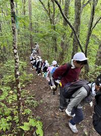 朝から小雨が降っていましたが、午前中は1.2.3.にじ組は前山登山を行い、励まし合いながら達成感を味わっていました。4.5.6組はイワナ捌きと焼き板を行いました。お昼に美味しくいただいていました。