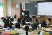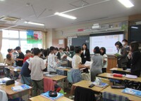 10月7日(火)、グローバル・スタディ科で研究授業を実施し、近隣校の専科教員約20名が参観しました。 児童は料理に関する会話を通して、値段や国などを尋ね合いながら英語で交流しました。