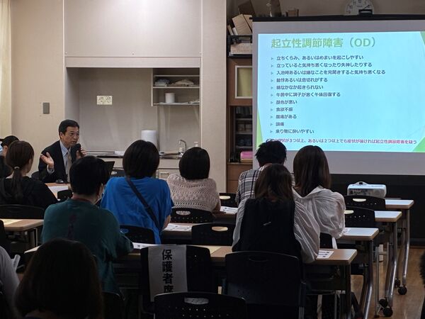 岩間こどもクリニック院長・岩間義彦先生をお招きし、「子どもの成長と健康を支えるために」というテーマでお話をいただきました。起立性調節障害への理解や対応、保護者からの質問への回答など、充実した時間となりました。