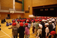 地域の保育園生、幼稚園生を招いて1年生が体育館で言葉や歌をプレゼントしました。その後各クラスに招き、掃除の仕方やどんな勉強をするか1年生が上手に教えていました。