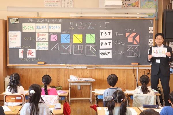 3月11日(水)藤井先生がゲストティーチャーとして、算数の「かたちづくり」の授業をしてくださいました。